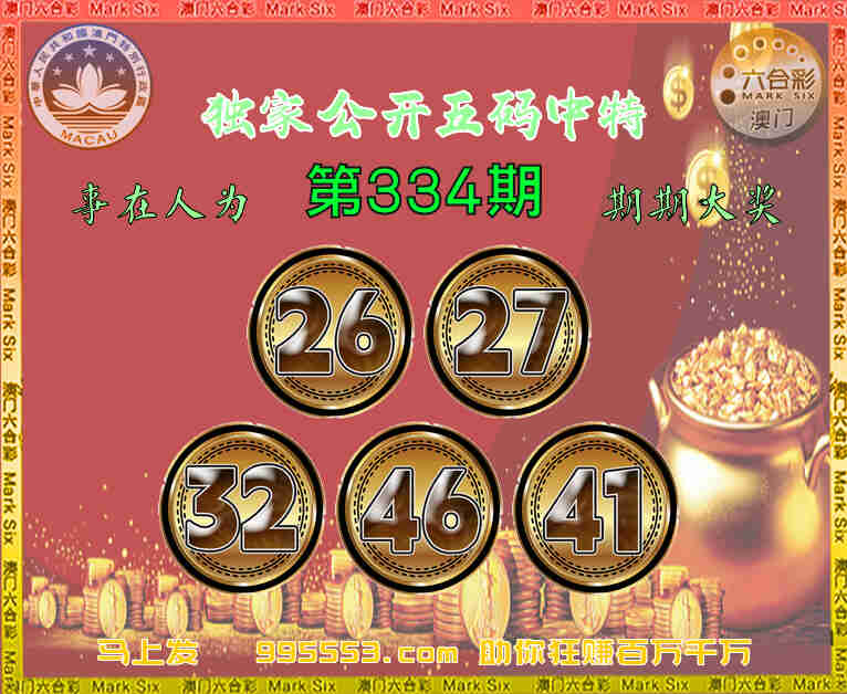 334期:《独家公开》 🥼五码中特🥼【26.27.32.46.41】开:46准