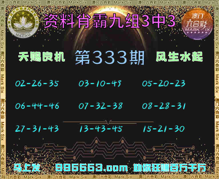 333期:【资料肖霸】 🏵️九组3中3🏵️