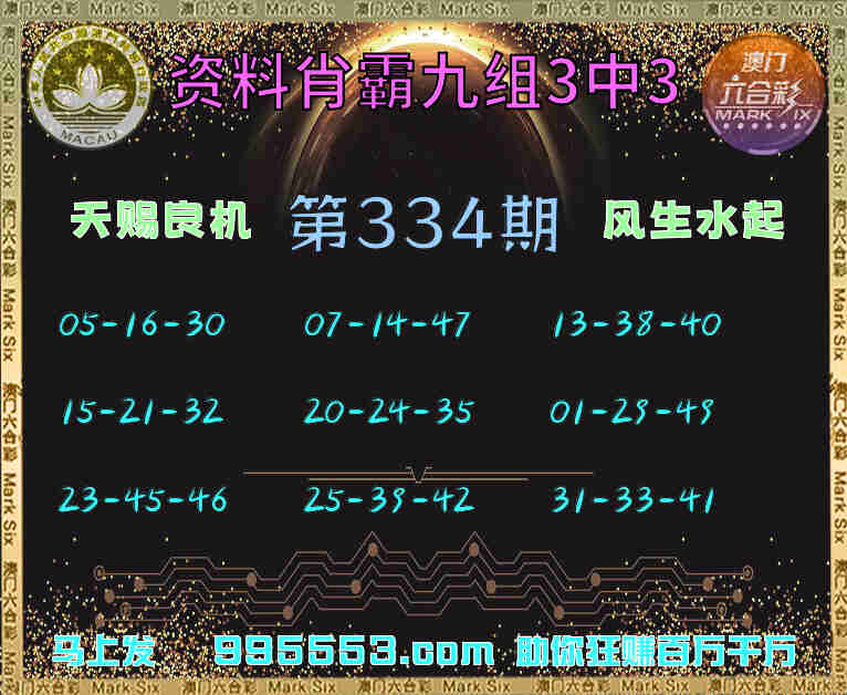 335期:【资料肖霸】 🏵️九组3中3🏵️
