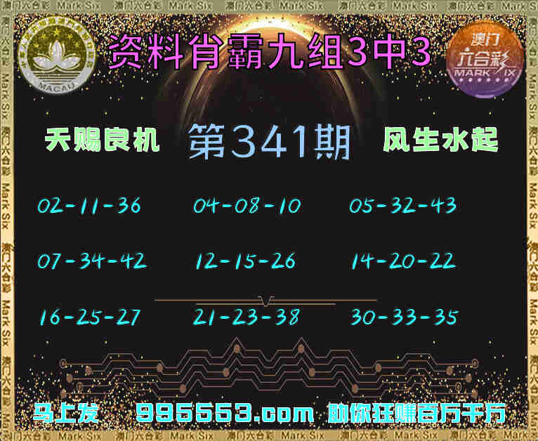 341期:【资料肖霸】 🏵️九组3中3🏵️